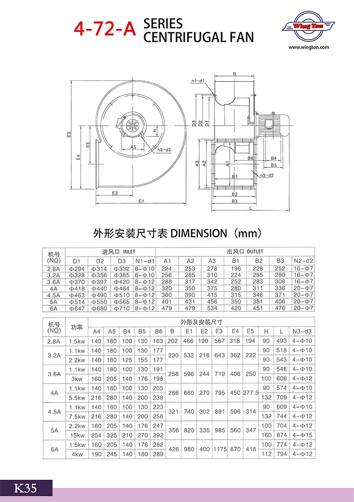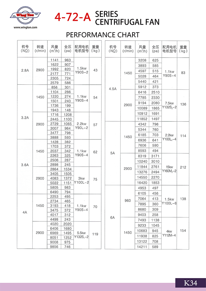 4-72-A SERIES CENTRIFUGAL FAN