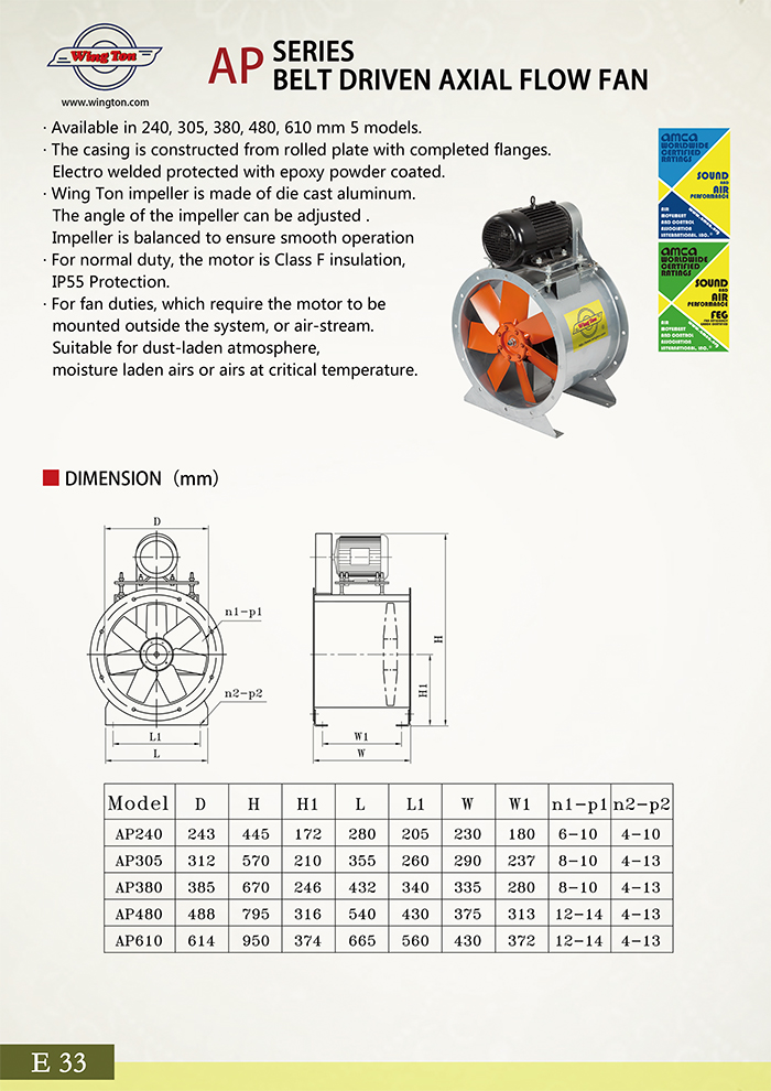 AP SERIES BELT DRIVEN AXIAL FLOW FAN