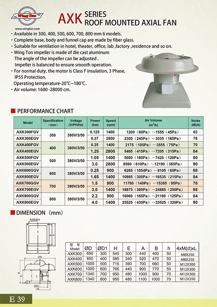 AXK ROOF MOUNTED AXIAL FAN