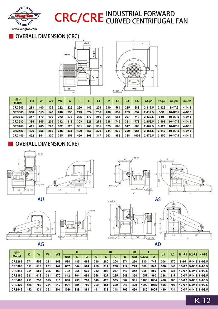 CRC/CRE INDUSTRIAL FORWARD CURVED CENTRIFUGAL FAN