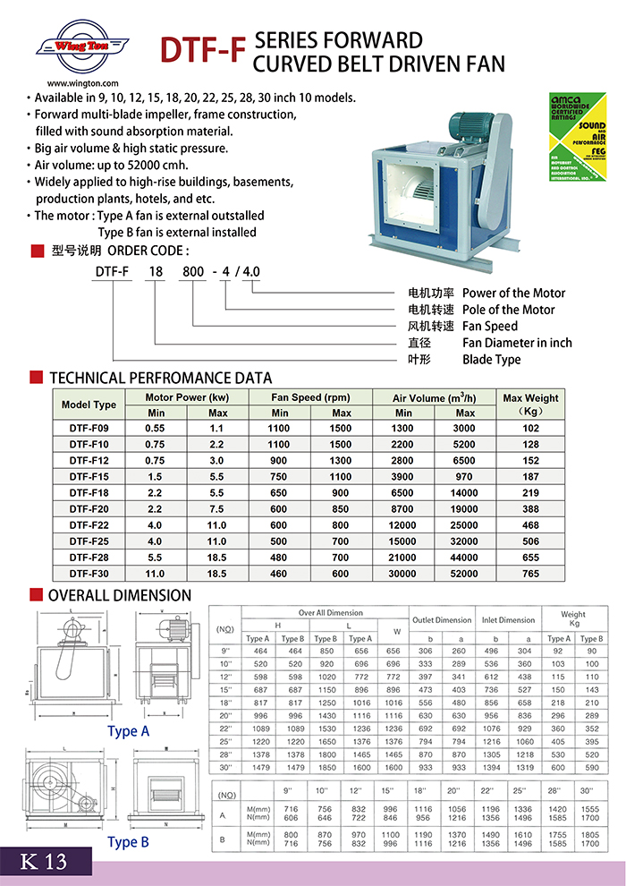 DTF-F SERIES FORWARD CURVED BELT DRIVEN FAN