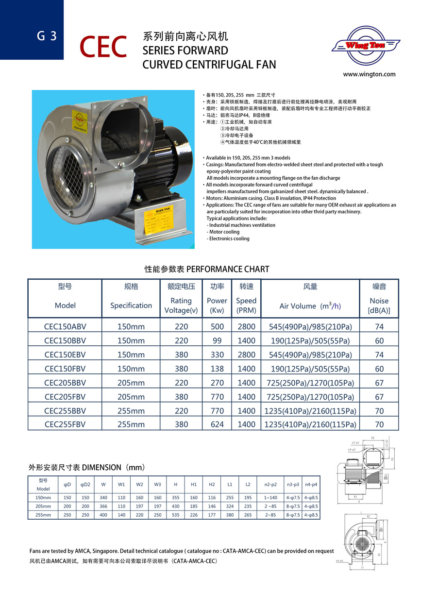 CEC SERIES FORWARD CURVED CENTRIFUGAL FAN